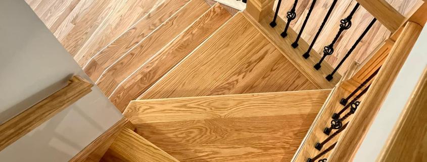 This is what it looks like after remodeling newel post, railing and iron balusters.