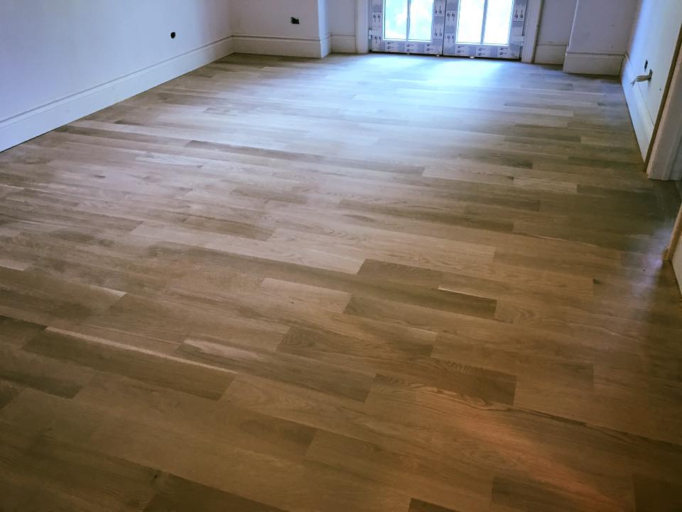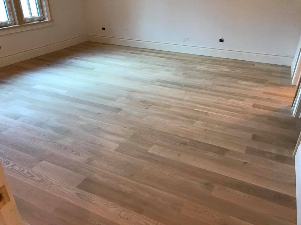 Oak Brook Sanding Hardwood Floor White Oak 5″. Today finishing second floor + cleanup wood by WOCA CLEANERS a mixture of Wood Cleaner and water in order to clean the floor and to open the grain so that a maximum amount of oil can penetrate the floor surface.