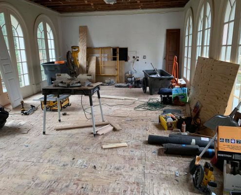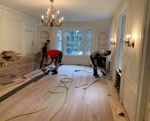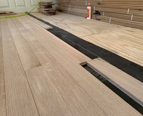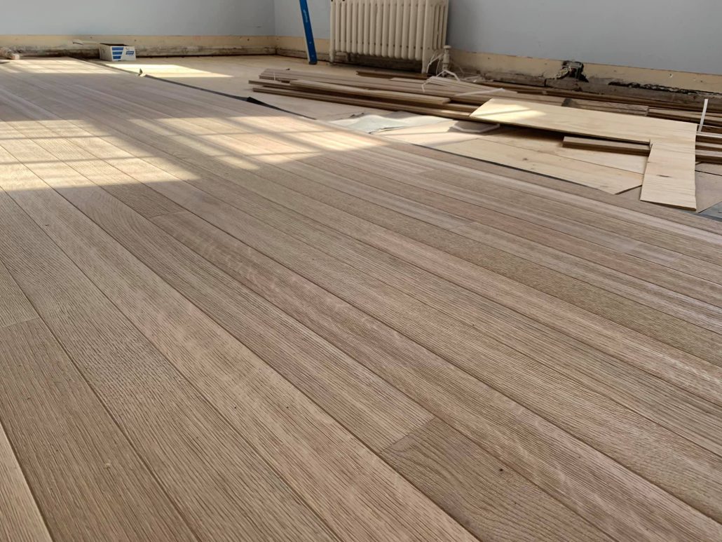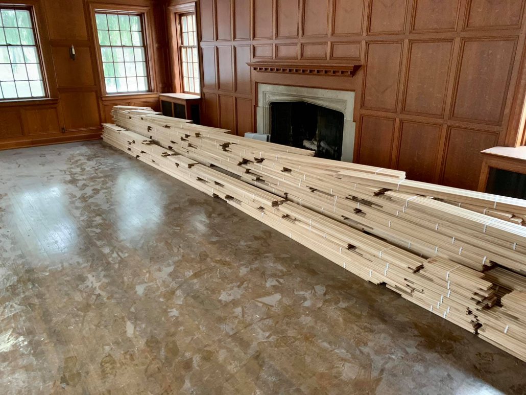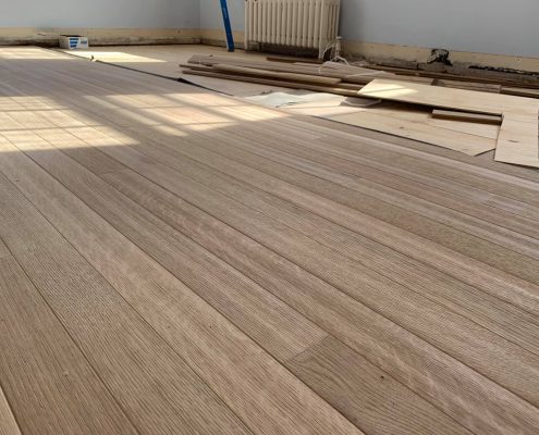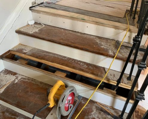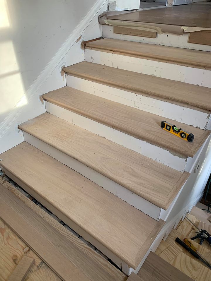 Wood delivery and after 14 days acclimate starting leveling wooden subfloor & installation and start rebuild staircase