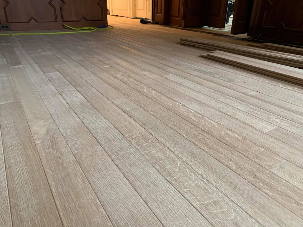 Custom, beautiful hardwood flooring White Oak 3 1/4” Rift & quartered Wire brushed ❤️