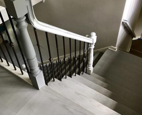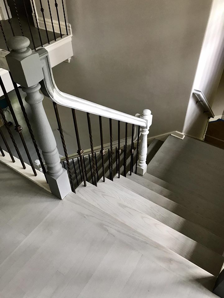 Hinsdale – Gray color Hardwood Floor and stairs final look .