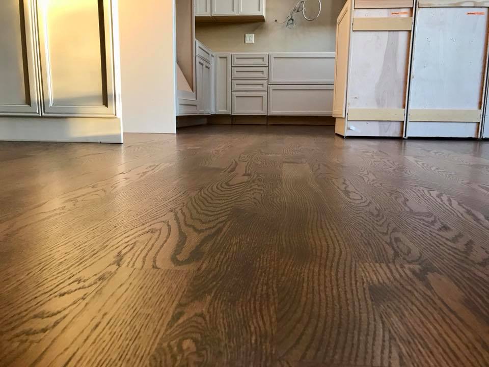 Then, the floor was finished with Bona Traffic Satin. Bona Traffic water based finishes-the most durable hardwood flooring finish on the market today. Take a look at our work here down below.