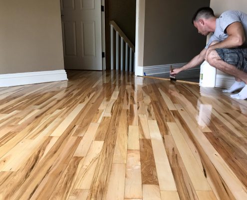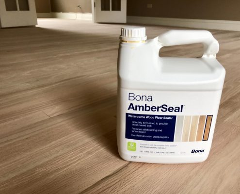 Customer like natural color floor . Apply first coat Bona AmberSeal is a non-yellowing, poly-tone waterborne sanding sealer that provides an oil-based look to hardwood floors.