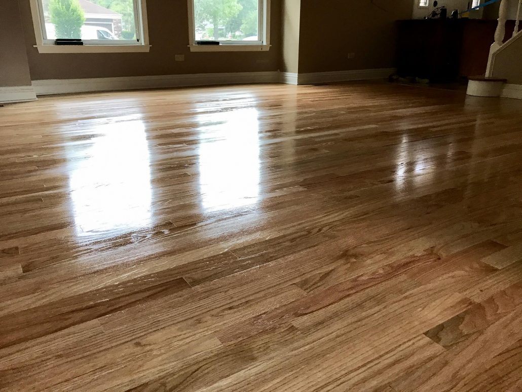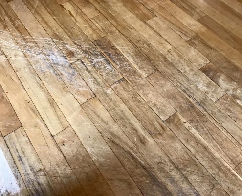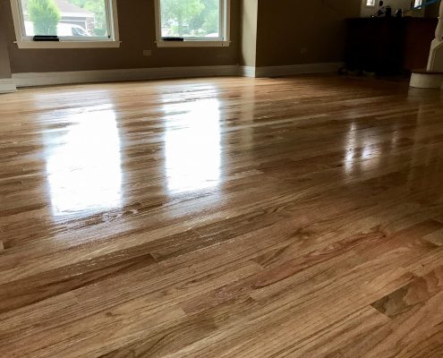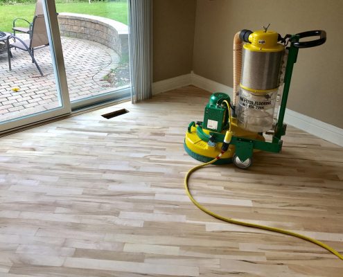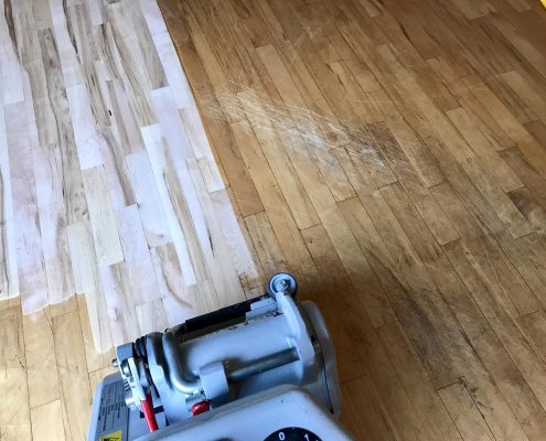Schamburg – Refinishing Hardwood Floor Red Oak & Maple 2 1/4″. Picture before and after sanding .
